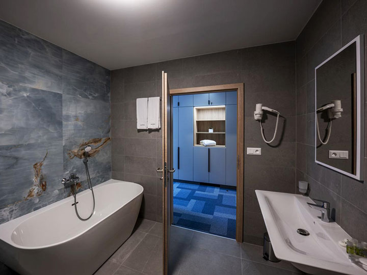 Особенностью нового курортного дома является отделка номеров и коридора первого этажа. В их отделке учтены специальные требования для гостей курорта, которым требуется лечение органов дыхания.