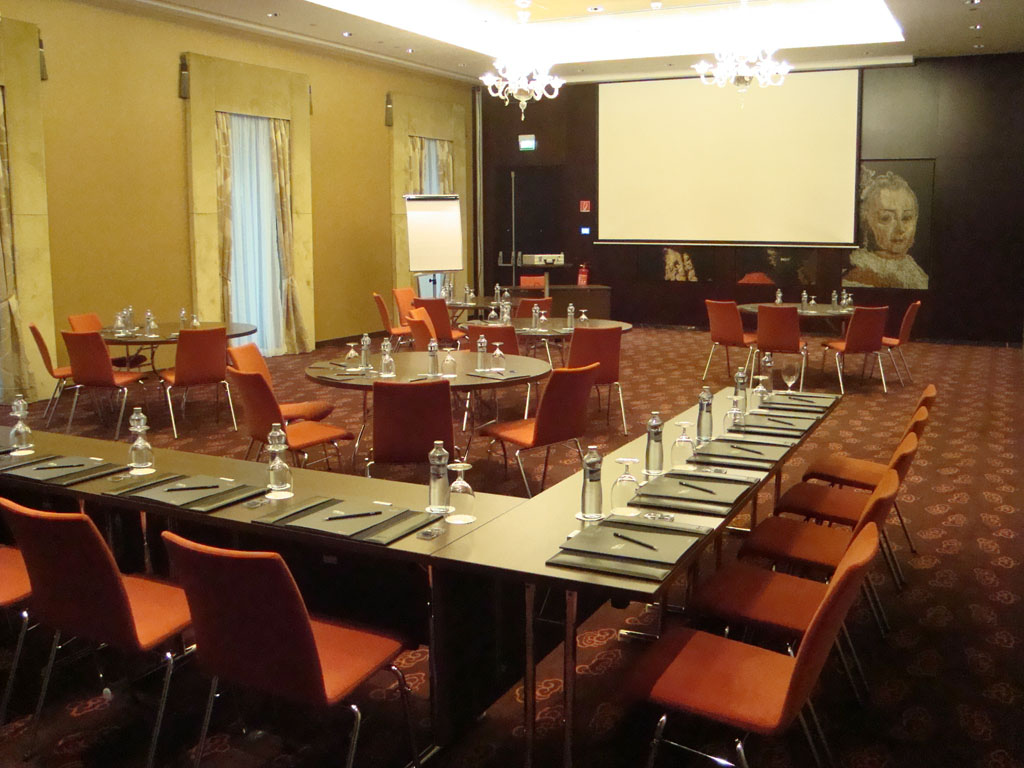 Для проведения корпоративных мероприятий в отеле имеется трансформируемый конференц-зал на 330 человек с кабинками и оборудованием для синхронного перевода, а также комнаты для переговоров и симпозиумов с необходимой оргтехникой.