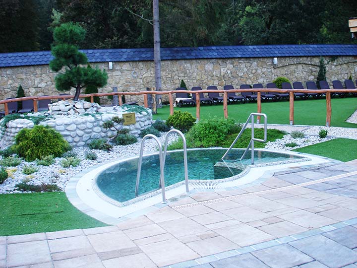 Natural SPA со своим открытым термальным бассейном, отдельно расположенной финской сауной, купелью для охлаждения и большой зоной отдыха.