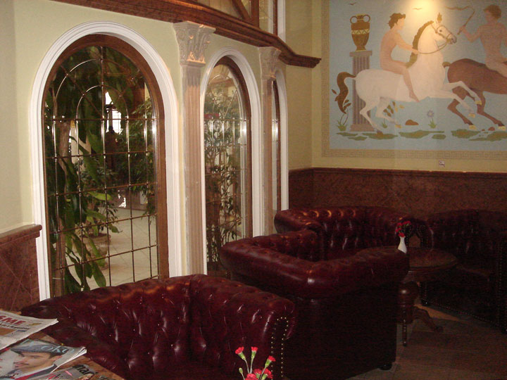 античного стиля. Многочисленные скульптурные композиции, фрески и колонны вызывают ассоциации с античными храмами и настраивают гостей отеля на чувство умиротворения и покоя.